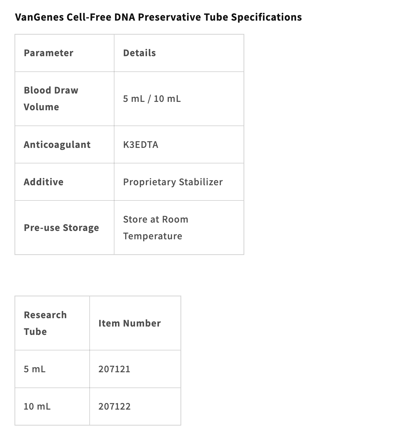 VanGenes Cell-Free DNA Preservative Tube (RUO)